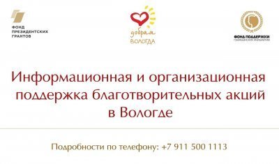 Фонд в рамках проекта "Информационный центр Добрая Вологда" готов оказать бесплатную информационную и организационную поддержку благотворительных акций, проводимых НКО и инициативными группами граждан